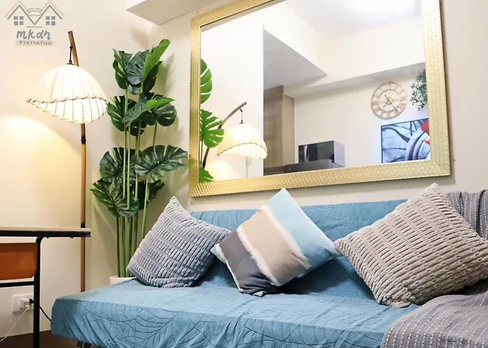 寝室1室のCozy Vibrant Staycation Netflix Wifi Mandaluyong マニラ市アパートはSierra Madre Marketから徒歩で5分の場所に位置し、プールの景色を見渡せます。 マニラ・アメリカ軍記念墓地から4.1kmで、24m²のアパートはグアダループ・ヴィエージョから2キロメートルくらいです。